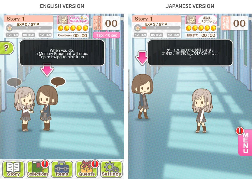 - Access: The Japanese version required an extra action in the principal menu because they are necessary at least two taps to enter an option. For the English version, one is enough.