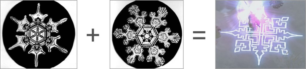Julienne has the particularity of having as dominating element the one that is the principal of the game: the ice. That’s why her symbol comes from pure snowflakes. Searching, I found the two that are the possible generators of this symbol.
