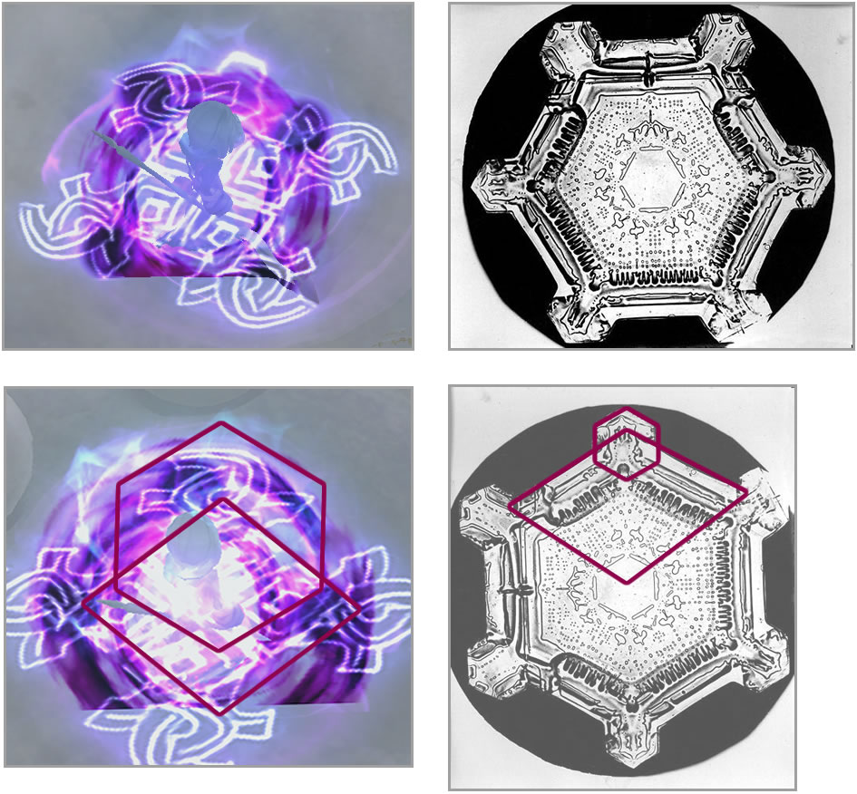 I imagine this symbol has two inspirations. The first one is a photo of Wilson Bentley. As we can see below, Setsuna’s casting symbol has, as center, a six petal flower like the snowflake. Also, the external peaks figure is formed by three spikes, very similar to the case of Setsuna’s aura, where the idea is similar but adding an important concept: her role in the battle.