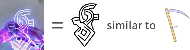 However, the visual element that seems like a real source of inspiration is the scythe, the principal weapon of Fides “The Reaper”!! It’s possible to see how the four points of the symbol are the abstraction of this weapon.