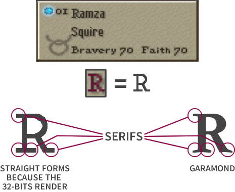 The serif also is seen at the โBโ of Bravery, โFโ of Faith, โLโ of Lv, โHโ of HP, etc.
