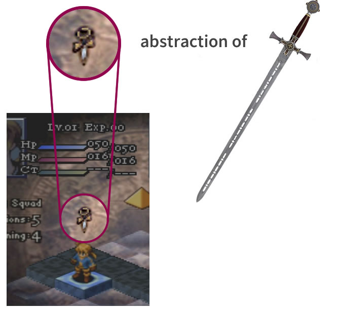 Finally, the icing on the cake, the sword icon used to select a character for and in battle, a weapon that comes into mind when we think about middle age, knights and castles.
