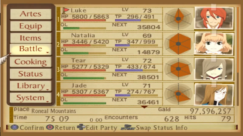 So, with the general idea, letโs take a closer look at the layout of the Tales of the Abyss menu.