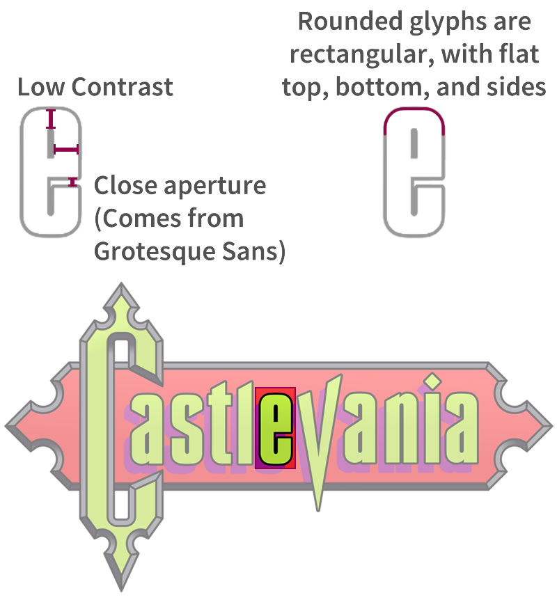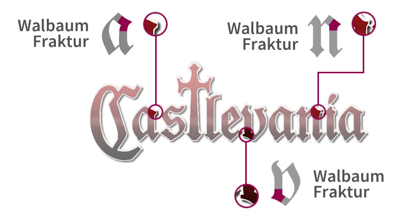 The above allows to rescue some terms that help to understand the typeface selection for the Castlevania logo design. In general, the characters have the features of some “Gothic” script or typeface, reminiscent of the video game genre. In addition, they have some calligraphic details because the first Bibles were written with this technique.
