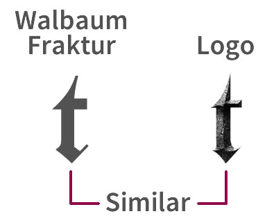 To continue, the “s” in the logotype has simpler stroke lines than that of the Fraktur font, considering the elimination of the flourish and that the lower part is straighter. The “l” is almost the same, the “e” has a similar construction except that it is wider, and the “v” has the head serif pointing to the right instead of to the left.