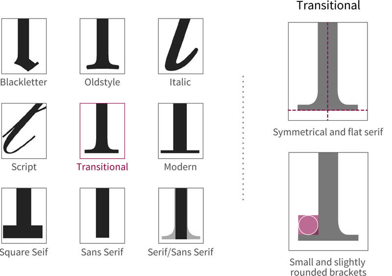 - “Families of Type.” [Online]. Available: https://graphicdesign.sfcc.spokane.edu/dzine/tutorials/process/type_basics/transitional.htm. [Accessed: 29-Dec-2020]