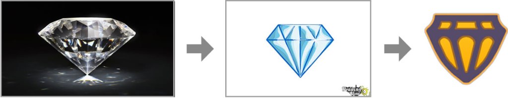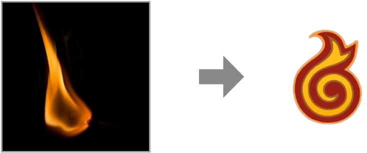 Finally, the red of the flame comes from the color of the fire. For the blue, let’s observe that the jewel is in the shape of a diamond, which is transparent. However, it is common to employ the blue in abstractions of transparent bodies, such as for water.