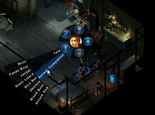 “Neverwinter Nights: Enhanced Edition (2018)” also uses a pie menu for quick commands, but it does handle hierarchies. In this case, the difference is that a preview of the sublevel is displayed. When the player focus on an icon, if it has another level, small circles appear around it that are the preview of it. If the player chooses the option, it takes the center and its options occupy its surroundings. This is similar to the โSecret of Manaโ Ring Command but giving context.